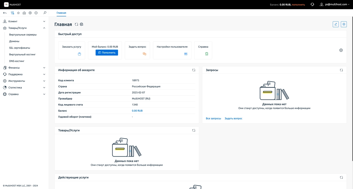 С 1 мая 2025 года мы перешли на новый биллинг. Он более удобный, современный и позволяет управлять всеми услугами MultiHOST в единой системе.